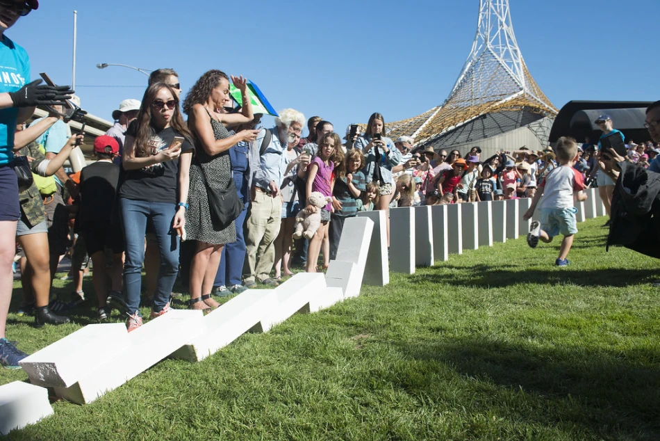 As the line weaves through Newcastle’s historic streets and everyday spaces, Dominoes Newcastle will connect neighbourhoods, landmarks and communities in a powerful chain reaction - a shared moment shaped by the city itself. Built by more than 300 volunteers and witnessed by thousands, it becomes a one-day, city-wide celebration of Newcastle and the people who make it.