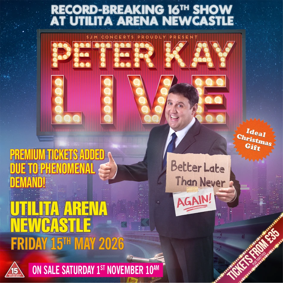 Comedy legend Peter Kay is set to make history once again as he returns to Newcastle’s Utilita Arena on Friday 15th May 2026 for an astonishing 16th performance at the venue — cementing his status as the only comedian ever to reach this incredible milestone.