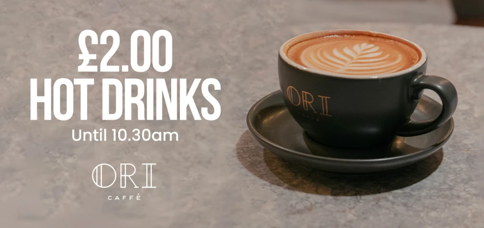 Kickstart your day with specialty coffee from Ori Caffe, where all hot drinks are just £2 until 10:30am!