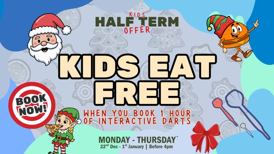 From Monday to Thursday, 22nd December to 1st January, parents can get two free kids' meals when booking one hour of interactive darts between 10am and 4pm.