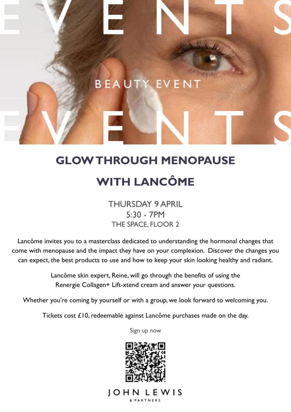 Join Lancôme at John Lewis this April to learn how to support your skin through the menopause.