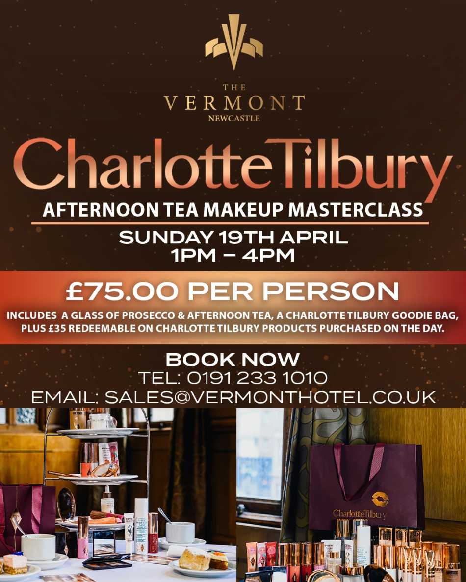 Join Newcastle's Vermont Hotel this April for their Charlotte Tilbury Afternoon Tea Makeup Masterclass!